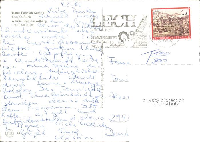 72037775 alte Postkarte Lech Vorarlberg Hotel Pension Austria Wintersportplatz postalisch gelaufen Erhaltung siehe scans KatCode: 11390341080113