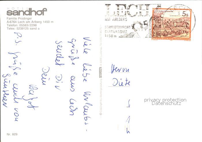 71961430 alte Postkarte Lech Vorarlberg Hotel Sandhof Kirche postalisch gelaufen Erhaltung siehe scans KatCode: 11390341080113