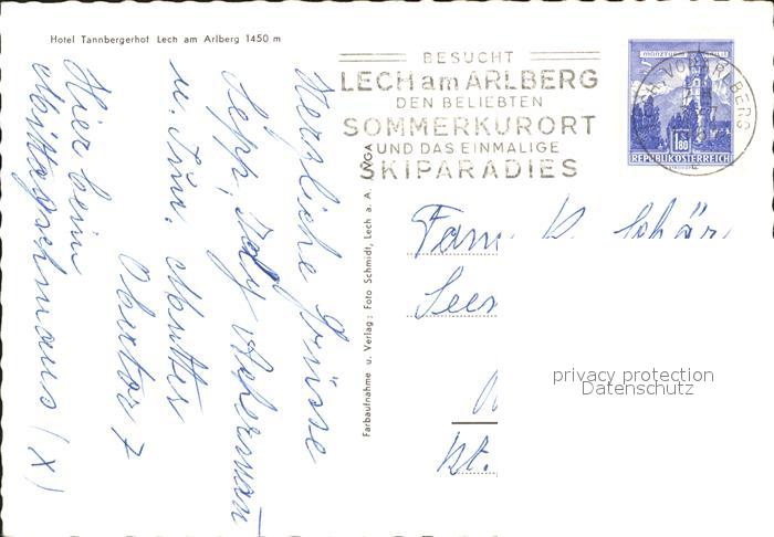 71708961 alte Postkarte Lech Vorarlberg Hotel Tannbergerhof Kirche postalisch gelaufen Erhaltung siehe scans KatCode: 11390341080113