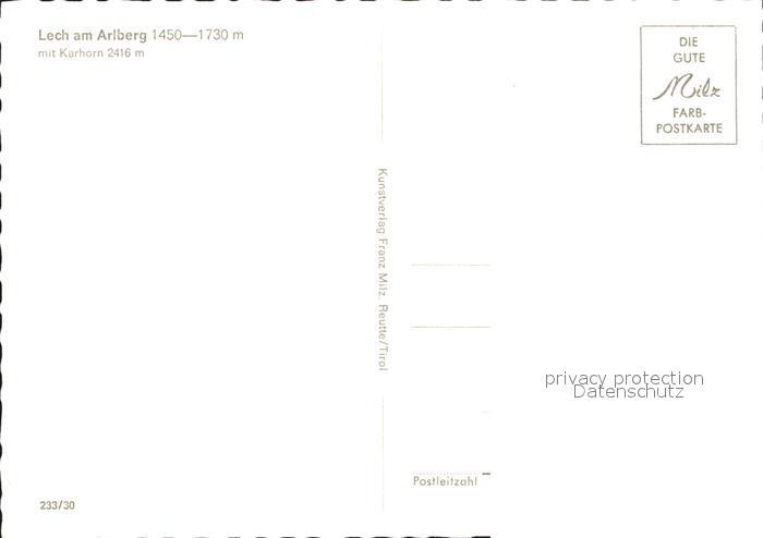 71981893 Lech Vorarlberg Karhorn postalisch nicht gelaufen Erhaltung siehe scans KatCode: 11390341080113