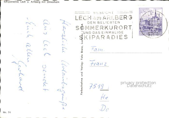72436354 alte Postkarte Lech Vorarlberg Omeshorn mit Skilift postalisch gelaufen Erhaltung siehe scans KatCode: 11390341080113
