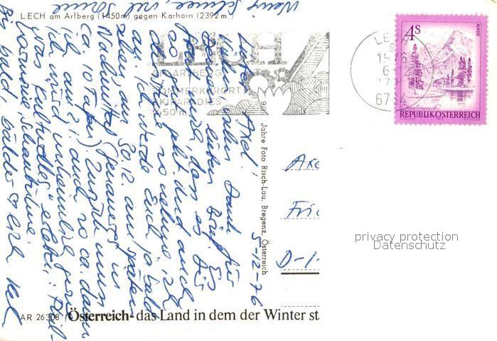 72935574 alte Postkarte Lech Vorarlberg Ortsmotiv mit Kirche Pferdeschlitten Blick zum Karhorn Lechquellengebirge Winterpanorama postalisch gelaufen Erhaltung siehe scans [FriedD77] KatCode: 11390341080113