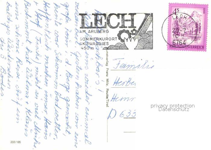 72897418 alte Postkarte Lech Vorarlberg Ortsmotive Schwimmbad Trachtenverein Panorama postalisch gelaufen Erhaltung siehe scans [WerneD78] KatCode: 11390341080113