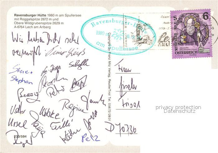 13317039 alte Postkarte Lech Vorarlberg Ravensburger Huette mit Roggalspitze postalisch gelaufen Erhaltung siehe scans [WerneD78] KatCode: 11390341080113