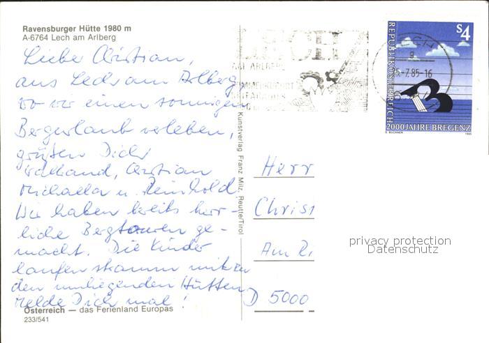 72050147 alte Postkarte Lech Vorarlberg Ravensburger Huette Spullersee postalisch gelaufen Erhaltung siehe scans KatCode: 11390341080113
