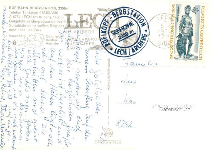 73304462 alte Postkarte Lech Vorarlberg Ruefibahn Bergstation Alpen postalisch gelaufen Erhaltung siehe scans [FriedD77] KatCode: 11390341080113