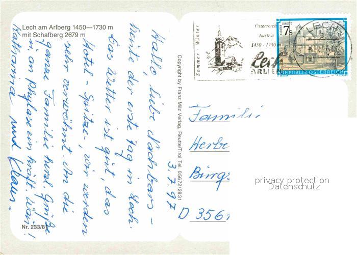 72846965 alte Postkarte Lech Vorarlberg Schafberg postalisch gelaufen Erhaltung siehe scans [NatalD47] KatCode: 11390341080113