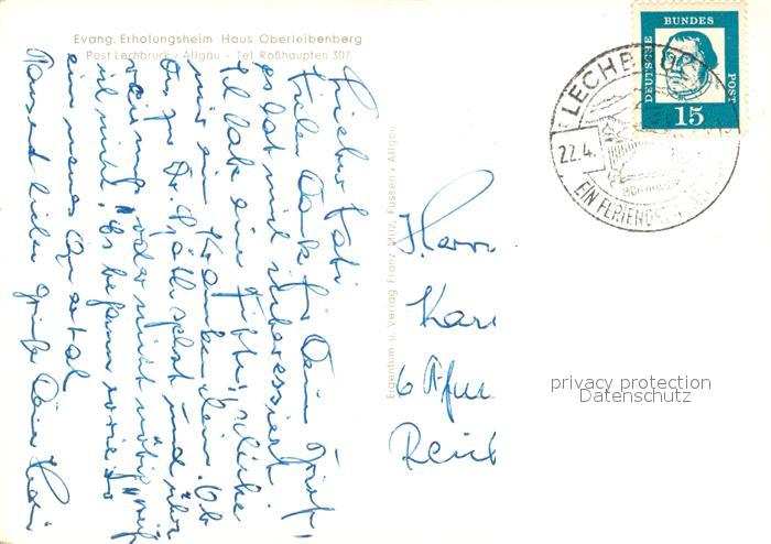 33049507 alte Postkarte Lechbruck See Evang. Erholungsheim Haus Oberleibenberg postalisch gelaufen Erhaltung siehe scans [NatalD47] KatCode: 11110009777147