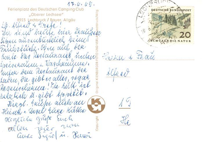 73878606 alte Postkarte Lechbruck See Ferienplatz des Deutschen Camping Club Oberer Lechsee postalisch gelaufen Erhaltung siehe scans [FriedD77] KatCode: 11110009777147