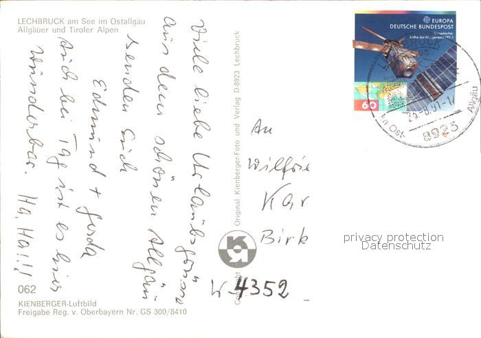 71993260 alte Postkarte Lechbruck See Fliegeraufnahme mit See und Alpen postalisch gelaufen Erhaltung siehe scans KatCode: 11110009777147