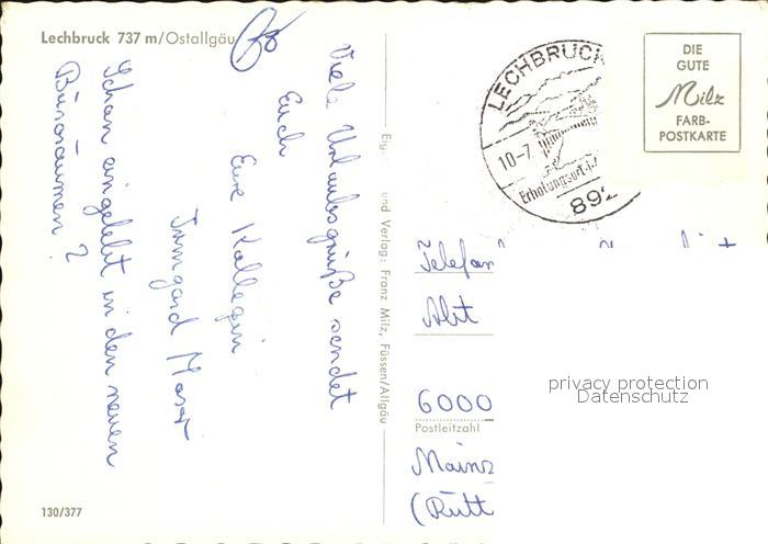 72452662 alte Postkarte Lechbruck See Gehrenspitze Koellespitze Schlicke Vilser Kegel postalisch gelaufen Erhaltung siehe scans KatCode: 11110009777147