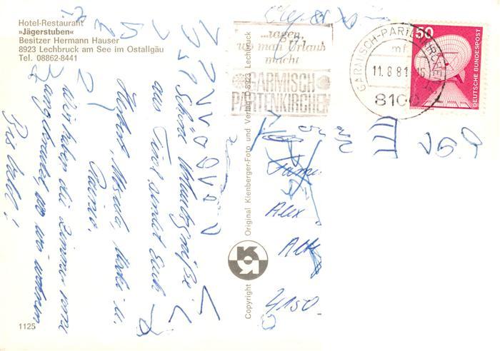 73883188 alte Postkarte Lechbruck See Hotel Restaurant Jaegerstuben postalisch gelaufen Erhaltung siehe scans [FriedD77] KatCode: 11110009777147