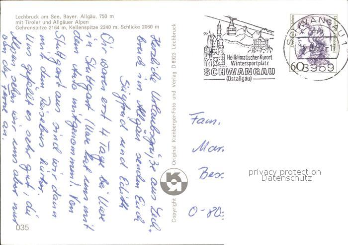 72590601 alte Postkarte Lechbruck See mit Tiroler und Allgaeuer Alpen postalisch gelaufen Erhaltung siehe scans [WerneD78] KatCode: 11110009777147