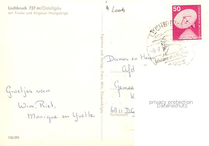 72932489 alte Postkarte Lechbruck See mit Tiroler und Allgaeuer Hochgebirge postalisch gelaufen Erhaltung siehe scans [WerneD78] KatCode: 11110009777147