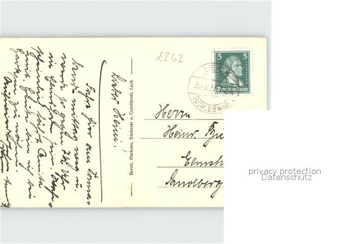 32363407 alte Postkarte Leck Cafe Harksen Zur Alten Backstube postalisch gelaufen Erhaltung siehe scans KatCode: 11110001054076