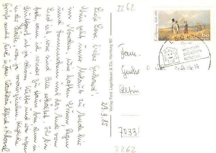 73924939 alte Postkarte Leck Schleswig-Holstein Muehle Ortszentrum Kirche Fischteiche Augarten Hauptstrasse Alte Fischhaeuser postalisch gelaufen Erhaltung siehe scans [FriedD77] KatCode: 11110001054076