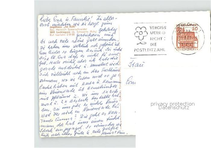 71942802 alte Postkarte Leckingsen Iserlohn Jagdhaus Im Kuehl Gasthaus postalisch gelaufen Erhaltung siehe scans KatCode: 11110005962024