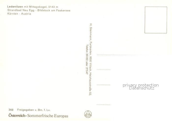 73272537 Ledenitzen Faakersee Bildstock Strandbad Neu Egg postalisch nicht gelaufen Erhaltung siehe scans [KathaD81] KatCode: 11390211020201