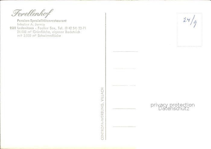 71901828 Ledenitzen Forellenhof Faakersee Kaernten postalisch nicht gelaufen Erhaltung siehe scans KatCode: 11390211020201
