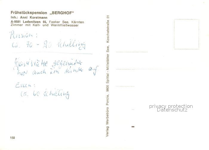 73055782 Ledenitzen Fruehstueckspension Berghof postalisch nicht gelaufen Erhaltung siehe scans [NatalD47] KatCode: 11390211020201