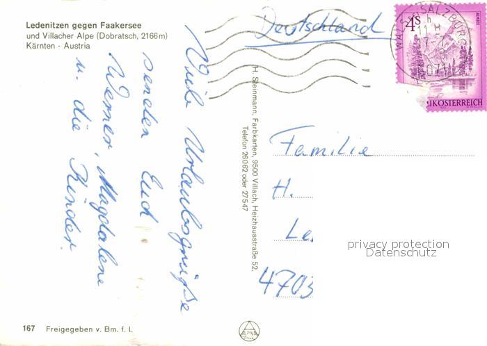 72696952 alte Postkarte Ledenitzen Panorama Villacher Alpe postalisch gelaufen Erhaltung siehe scans [KathaD79] KatCode: 11390211020201