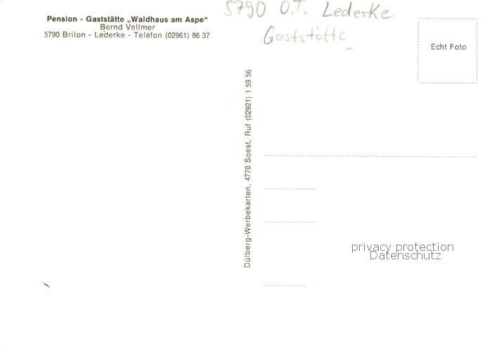 73863264 Lederke Brilon Pension Gaststaette Waldhaus am Aspe postalisch nicht gelaufen Erhaltung siehe scans [FriedD77] Frie Katcode 11110005958012