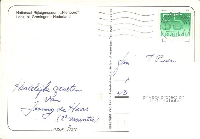 old postcard Leek Groningen National Rijtuigmuseum Nienoord postalisch gelaufen Erhaltung siehe scans