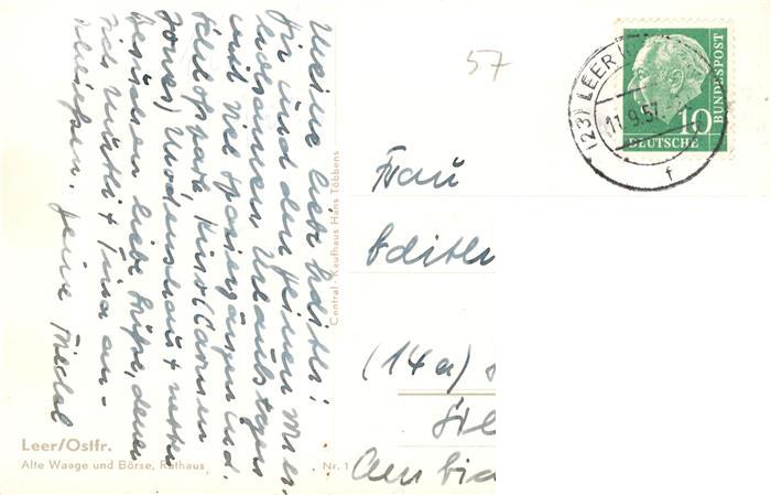 73897745 alte Postkarte Leer Ostfriesland Alte Waage und Boerse mit Rathaus postalisch gelaufen Erhaltung siehe scans [WerneD78] KatCode: 11110003457013