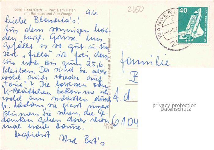 74100681 alte Postkarte Leer Ostfriesland Hafenpartie mit Rathaus und Alte Waage postalisch gelaufen Erhaltung siehe scans [WerneD78] KatCode: 11110003457013
