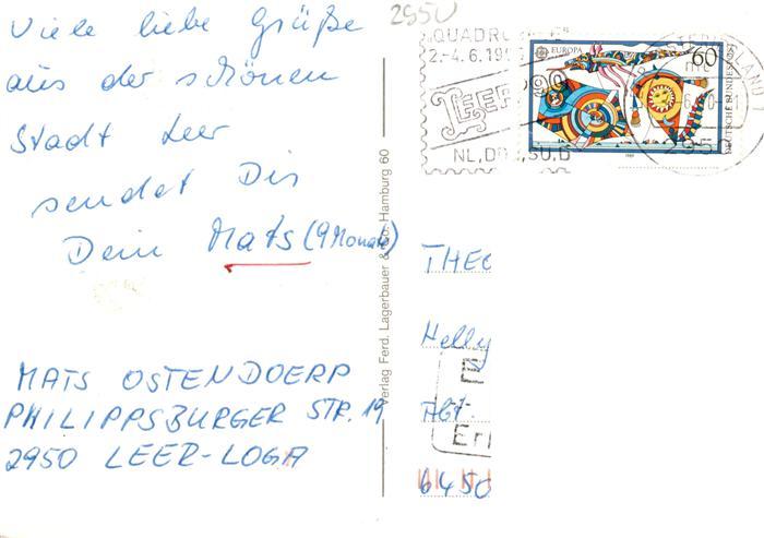 73930636 alte Postkarte Leer Ostfriesland Heimatmuseum Wasserturm Wolffsches Haus Rathaus Muehlenstrasse Hafen postalisch gelaufen Erhaltung siehe scans [WerneD78] KatCode: 11110003457013