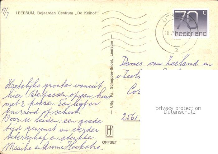 old postcard Leersum Bejaarden Centrum De Keihof postalisch gelaufen Erhaltung siehe scans