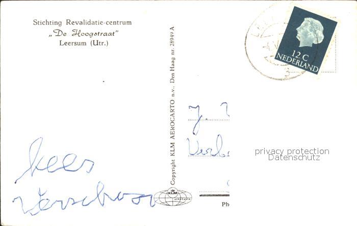 alte Postkarte Leersum Stichting Revalidatie Centrum De Hoogstraat postalisch gelaufen Erhaltung siehe scans