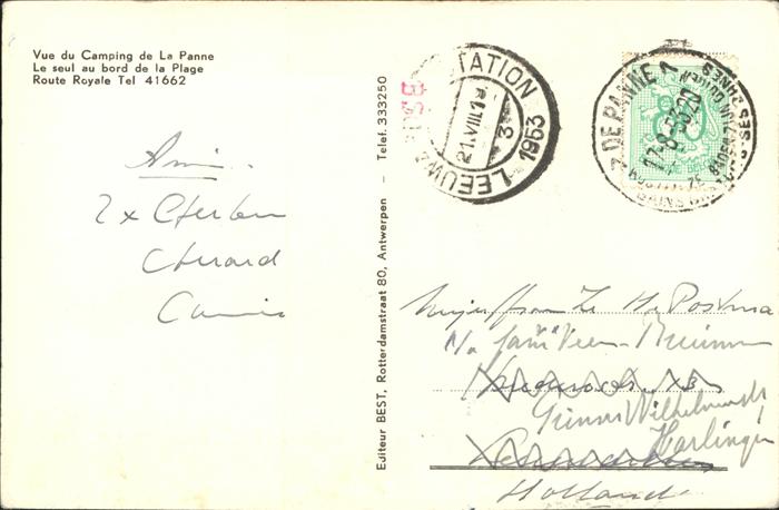 71319553 carte postale Leeuw-Saint-Pierre Camping Plage Rute Royale postalisch gelaufen gute Erhaltung KatCode: 11070023002026