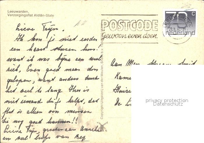 old postcard Leeuwarden Aldlan State Versorginsflat postalisch gelaufen Erhaltung siehe scans