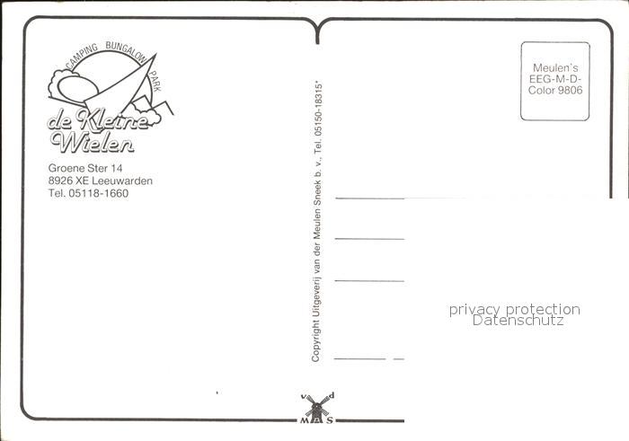 old postcard Leeuwarden Camping de Kleine Wielen Badesee Gaststaette Strand Spielplatz postalisch gelaufen Erhaltung siehe scans