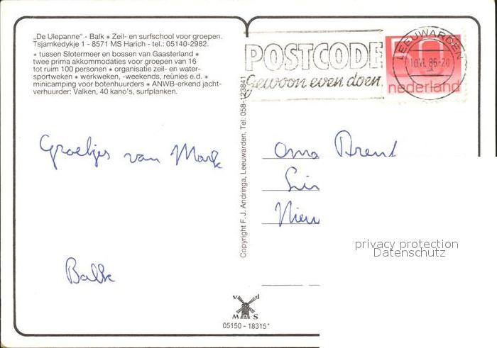 old postcard Leeuwarden De Ulepanne Balk postalisch gelaufen Erhaltung siehe scans