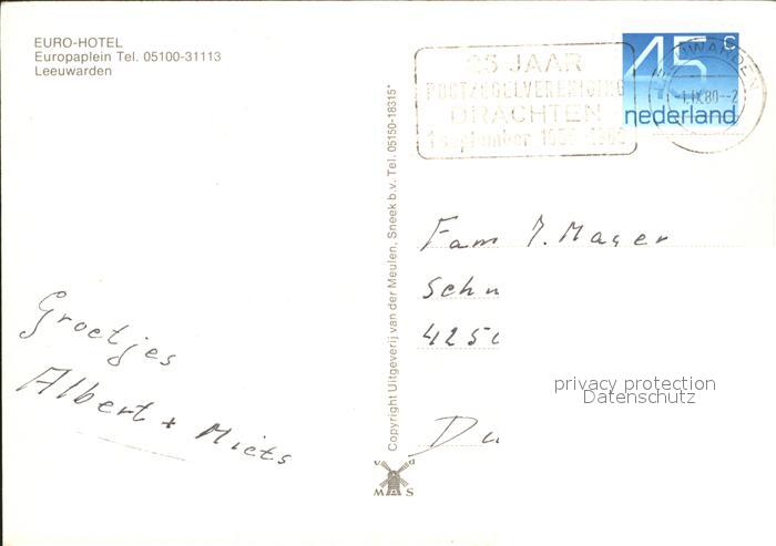 old postcard Leeuwarden Euro-Hotel Europaplein postalisch gelaufen Erhaltung siehe scans
