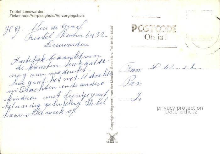 old postcard Leeuwarden Triotel Ziekenhuis Verpleeghuis Verzorgingshuis postalisch gelaufen Erhaltung siehe scans [AntonD74]