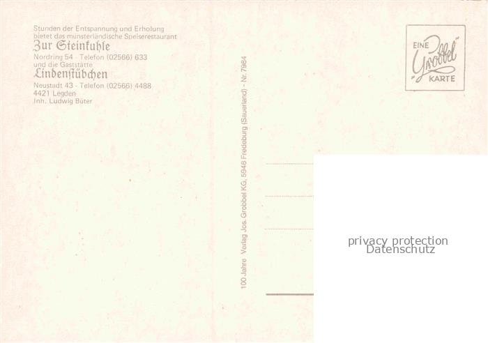 74157687 Legden BORKEN NRW Steinkuhle Restaurant Gaststaette Innenraum Holzbalken Tische Stuehle Blumendekoration postalisch nicht gelaufen Erhaltung siehe scans [Karloger] KatCode: 11110005554036