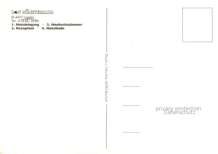 73766699 Legden Dorf Muensterland Hoteleingang Rezeption Hochzeitszimmer Hotelhalle postalisch nicht gelaufen Erhaltung siehe scans [WerneD78] KatCode: 11110005554036