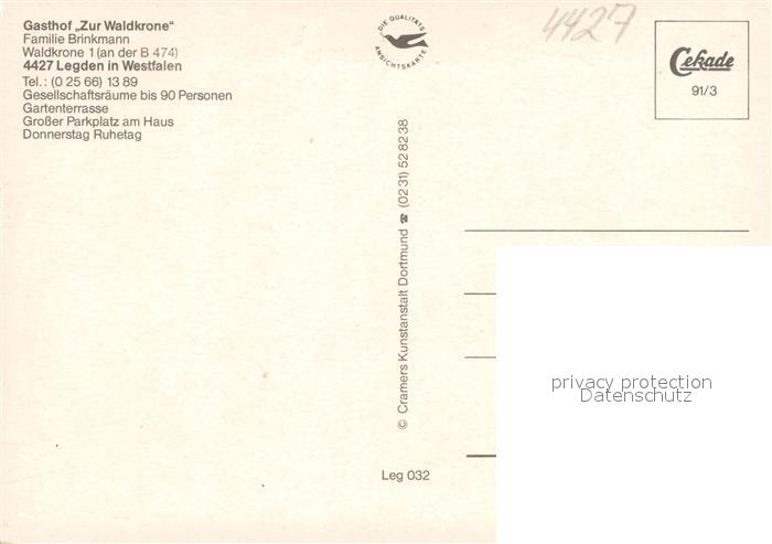 73646100 Legden Gasthof Zur Waldkrone Gastraeume postalisch nicht gelaufen Erhaltung siehe scans [WerneD78] KatCode: 11110005554036