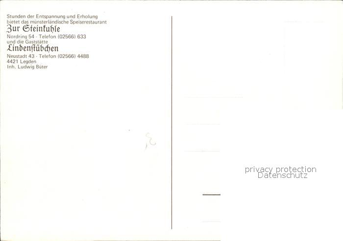 72577702 Legden Restaurant Zur Steinkuhle Gaststaette Lindenstuebchen postalisch nicht gelaufen Erhaltung siehe scans [FriedD77] KatCode: 11110005554036