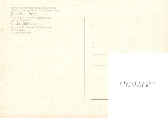 73569205 Legden Restaurant Zur Steinkuhle Gaststaette Lindenstuebchen postalisch nicht gelaufen Erhaltung siehe scans [FriedD77] KatCode: 11110005554036