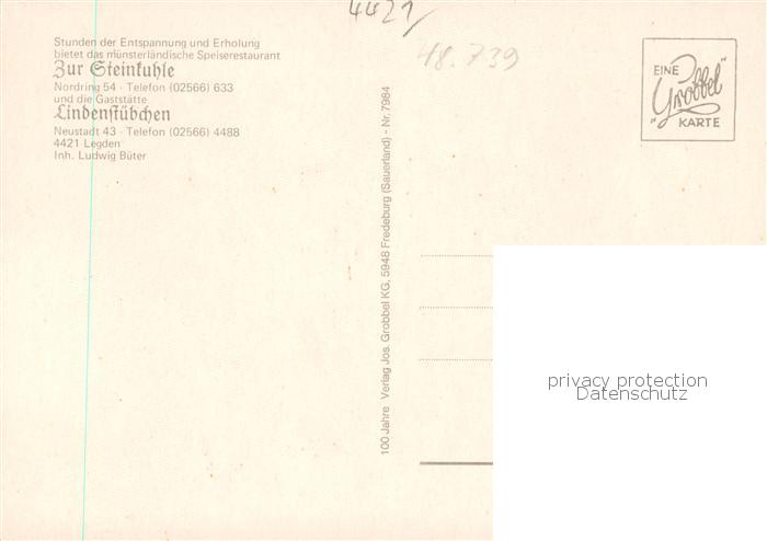 73870083 Legden Restaurant Zur Steinkuhle mit Gaststaette Lindenstuebchen postalisch nicht gelaufen Erhaltung siehe scans [WerneD78] KatCode: 11110005554036