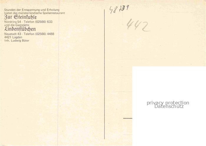 74086319 Legden Restaurant Zur Steinkuhle mit Gaststaette Lindenstuebchen postalisch nicht gelaufen Erhaltung siehe scans [WerneD78] KatCode: 11110005554036