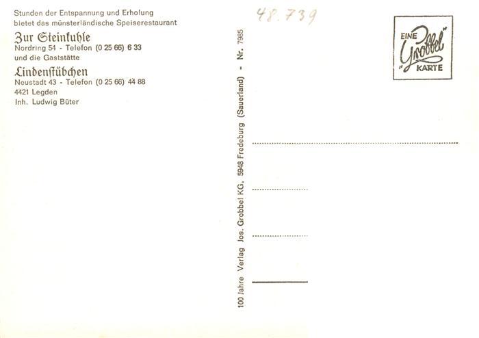 73894307 Legden Speiserestaurant Zur Steinkuhle mit Gaststaette Lindenstuebchen postalisch nicht gelaufen Erhaltung siehe scans [WerneD78] KatCode: 11110005554036