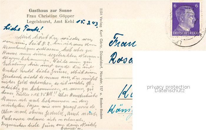 43329243 alte Postkarte Legelshurst Hauptstrasse Gasthaus zur Sonne Bahnhofstrasse postalisch gelaufen Erhaltung siehe scans [FriedD77] KatCode: 11110008317141