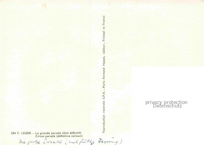 74091716 LEGER F. Kuenstlerkarte la grande parade Circus postalisch nicht gelaufen Erhaltung siehe scans [SanaeD93] KatCode: 22240000003200