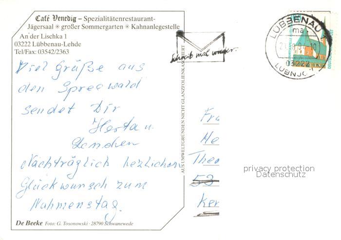 73659604 alte Postkarte Lehde Cafe Venedig Restaurant postalisch gelaufen Erhaltung siehe scans [LiesaD40] KatCode: 11110012066196