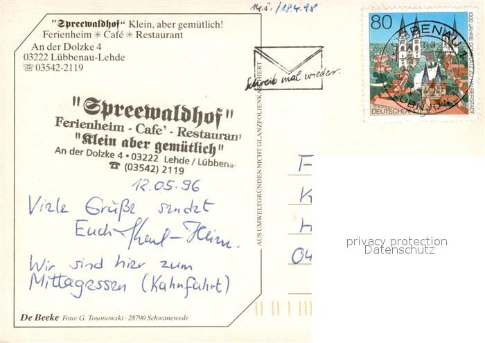 73659606 alte Postkarte Lehde Ferienheim Spreewaldhof Caf? Restaurant postalisch gelaufen Erhaltung siehe scans [LiesaD40] KatCode: 11110012066196